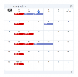 ※急用によりスタッフの休みが変更になる場合がございますのでご了承ください。