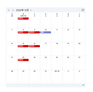 お店の定休日は22日(月)が年内最後の定休日になり、